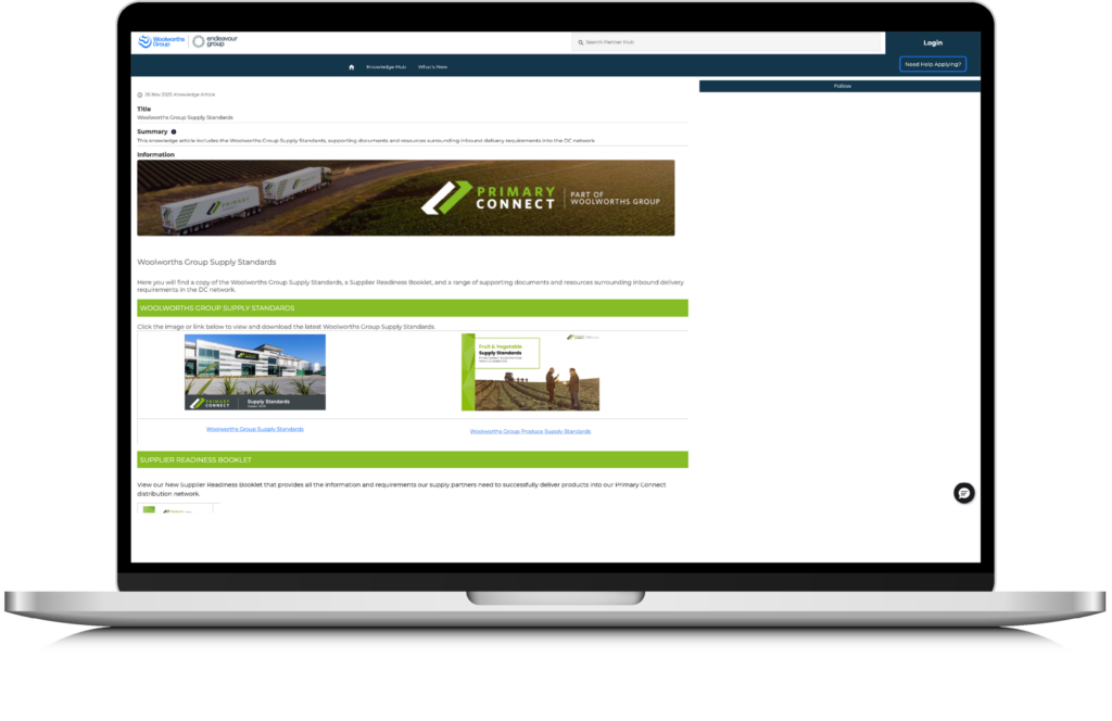 Here you will find a copy of the Woolworths Group Supply Standards, a Supplier Readiness Booklet, and a range of supporting documents and resources surrounding inbound delivery requirements in the DC network.