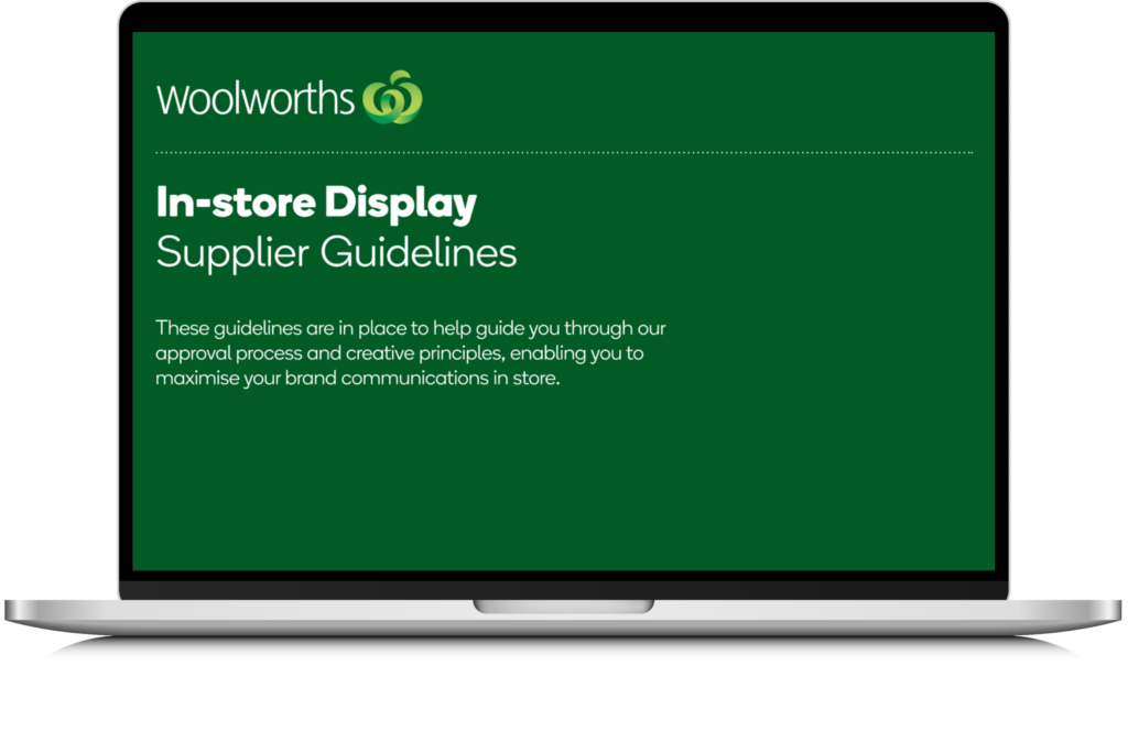 From display specifications and creative propositions, advice on applying Woolworths promotional assets, rules of engagement, to sustainability considerations – find step-by-step instructions to help you create your next display. If you’re sending your displays via a Woolworths Distribution Centre, make sure to review the Woolworths Group Supply Standards. Plan in advance, and inform stores when you are planning to visit to build displays.