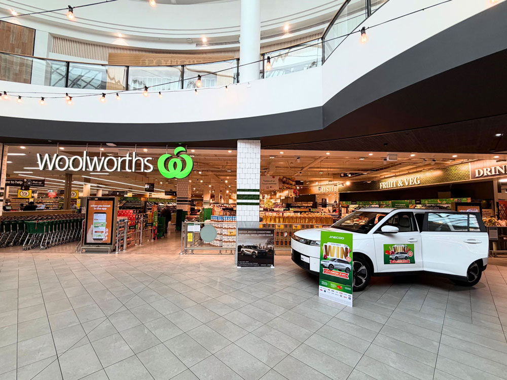 We placed physical JAECOO display cars in shopping centres around Australia, including Chadstone in Melbourne and Indooroopilly in Brisbane, making the prize tangible and creating a “wow” factor during the daily shop.